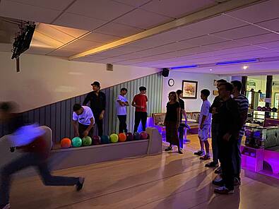 Hinsichtlich der Freizeitgestaltung stehen auf unserem Gelände vielfältige Angebote zur Verfügung. Der Freizeitbereich umfasst eine große Sporthalle mit Fitnessraum und eine Cafeteria mit Dart, Flipper und Billiard sowie Gesellschaftsspielen. Darüber hinaus besteht ein reichhaltiges Angebot an gemeinschaftlichen Freizeitaktivitäten wie beispielsweise Fußball, Volleyball, Spieleabende und Dartturniere.